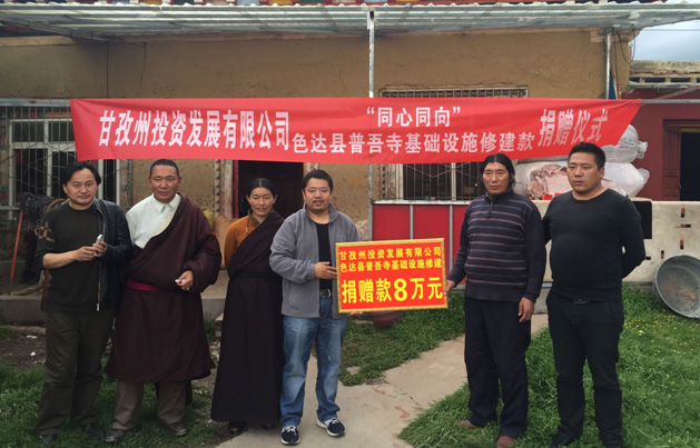 公司向泥朵乡政府、普吾寺寺管会捐赠基础设施修建款8万元