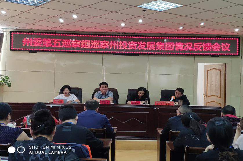 8月27日,州委第五巡察组在州投资集团召开了巡察情况反馈会。集团党总支书记、董事长、总经理易刚主持会议,州委第五巡察组组长孙雪毓、州委第五巡察组副组长赵玉玲、州委第五巡察组副组长李晓涛出席会议。