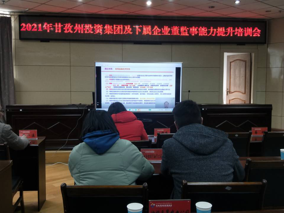 为贯彻落实国资国企改革的总体要求,不断提升董监事履职能力,高质量推进集团管控体系和治理能力建设,甘孜藏族自治州投资发展集团有限公司于12月24日-25日在康定举办董监事履职能力提升培训班。