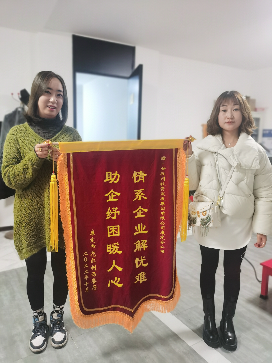 日前,州投资发展集团康定分公司收到商铺承租户送上的“疫情无情人有情、公司有情暖人心”“情系企业解忧难、助企纾困暖人心”“共克时艰渡难关、免租惠企显担当”等多面锦旗,对公司疫情期间落实租金减免政策,切实解决承租户早日复工复产的暖心善举表示诚挚感谢。
