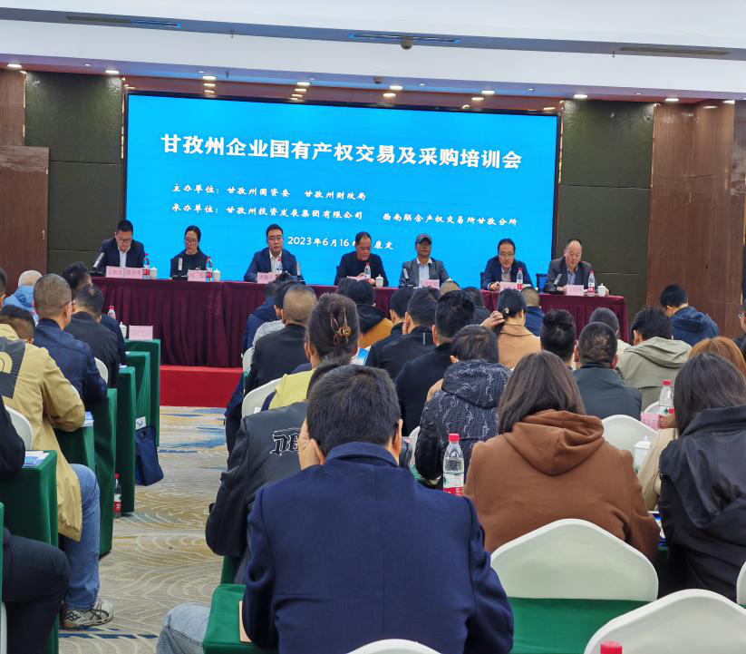 为全面推动企业国有资产交易监管政策贯彻落实,进一步加强全州国有企业资产交易和招标采购环节的监督管理,从源头上防范国有企业资产流失,促进国有资产保值增值,助力全州经济高质量发展,6月16日,由州国资委、州财政局主办,州投资发展集团有限公司、西南联合产权交易所甘孜分所承办的甘孜州企业国有产权交易及采购培训会在康召开。甘孜州纪委监委驻发改局纪检监察组、甘孜州国资委、甘孜州财政局、西南联合产权交易所相关领导出席开幕式,州属一级国有企业分管国有产权及采购负责同志、各县(市)一级国有企业分管国有产权及采购负责同志参加培训。