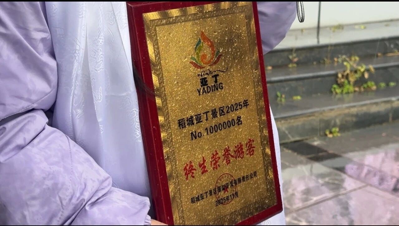 上午10时,在景区游客中心,来自四川省的游客杨先生一家幸运地成为第100万名游客,接过了景区精心准备的“终身荣誉游客”证书,正式解锁“终身免门票畅游亚丁景区”的特殊权益。景区负责人为其送上包含特色文创礼盒、非遗手工作品在内的“幸运大礼包”。