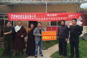 7月6日,州投资发展集团公司董事长易刚率工作组深入色达县泥朵乡普吾寺开展“同心同向”活动,工作组一行向寺庙僧侣、寺管会成员宣讲了党的宗教政策和全国宗教会议精神,同时还举行了普约村、普吾寺基础设施修建款项捐赠仪式。仪式上,易刚代表公司向泥朵乡人民政府、普吾寺寺管会捐赠基础设施修建款8万元,用于援...