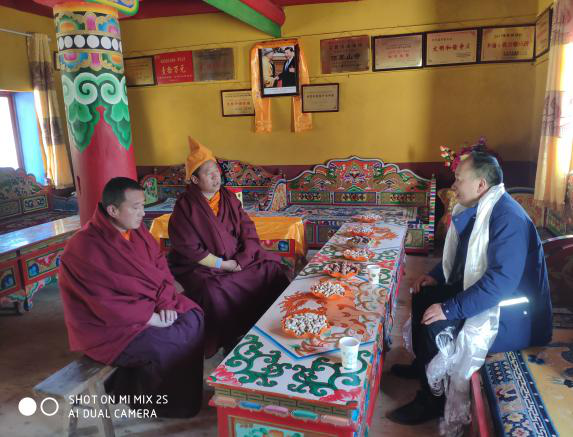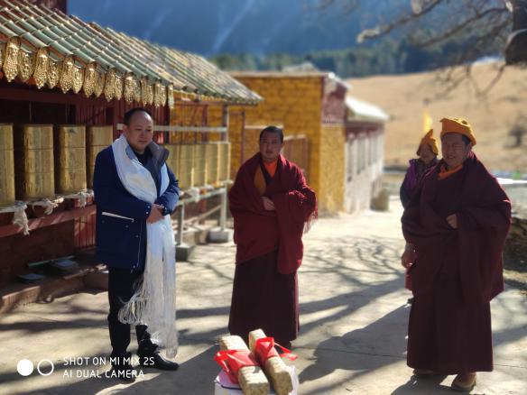王晓林总经理一行深入丹巴县顶果山寺庙,与寺庙僧侣召开座谈,了解寺庙基础建设、僧侣人员等情况,转达集团党委对他们的深切关怀,为他们送去了新春的问候和祝福。