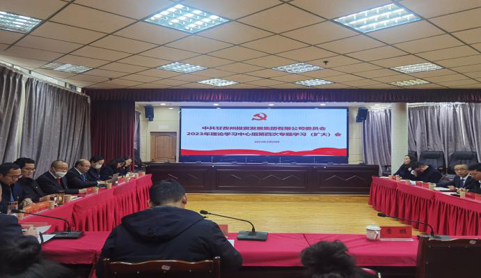2023年3月29日,州投资发展集团党委书记、董事长陶勇同志主持召开党委理论学习中心组2023年第四次专题学习(扩大)会议。州国资委党委委员、副主任查鹏和州国资委党委委员、政治部主任纳吾格西旁听列席会议,集团理论学习中心组成员参加会议,各部门、各子分公司及专班负责人、党员代表列席会议。