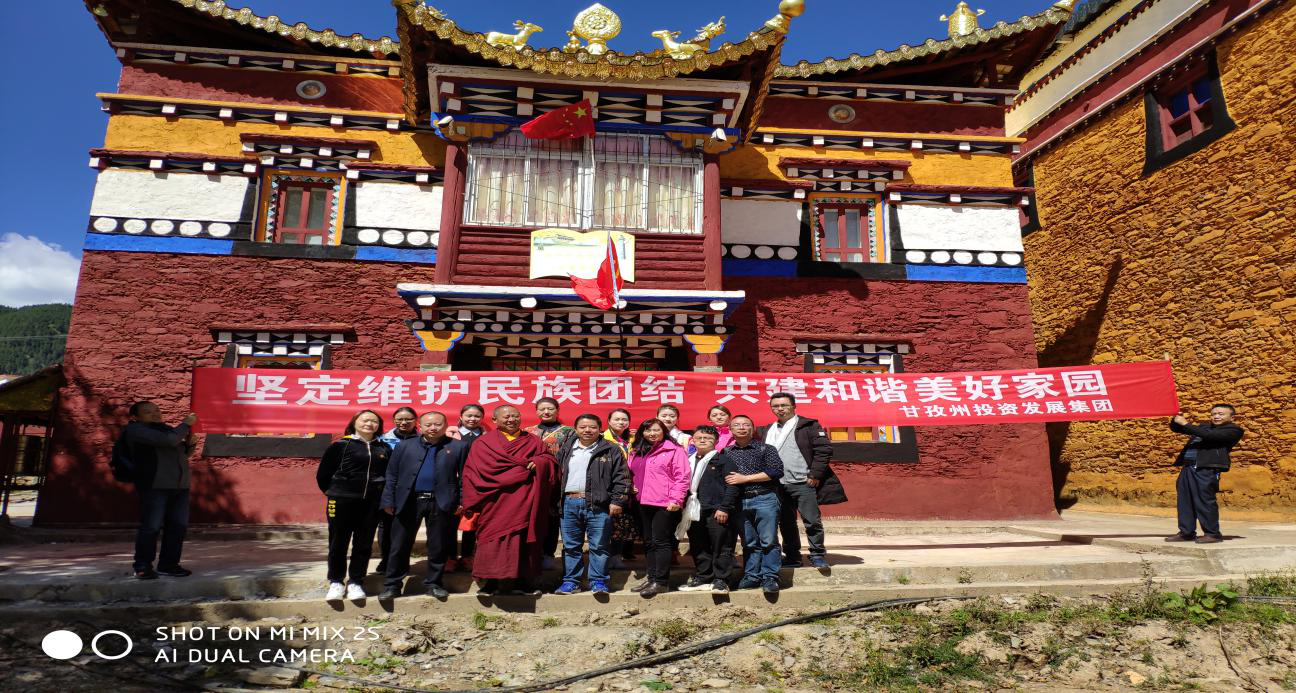 为深入开展甘孜州创建全国民族团结进步示范州工作,全面贯彻落实党的民族政策,州投资集团以“不忘初心、牢记使命”主题教育为契机,以“民族宗教事务、民族团结进步”为主题,于2019年9月28日,深入丹巴顶果山寺,开展民族团结进步共建对子、同心同向活动。